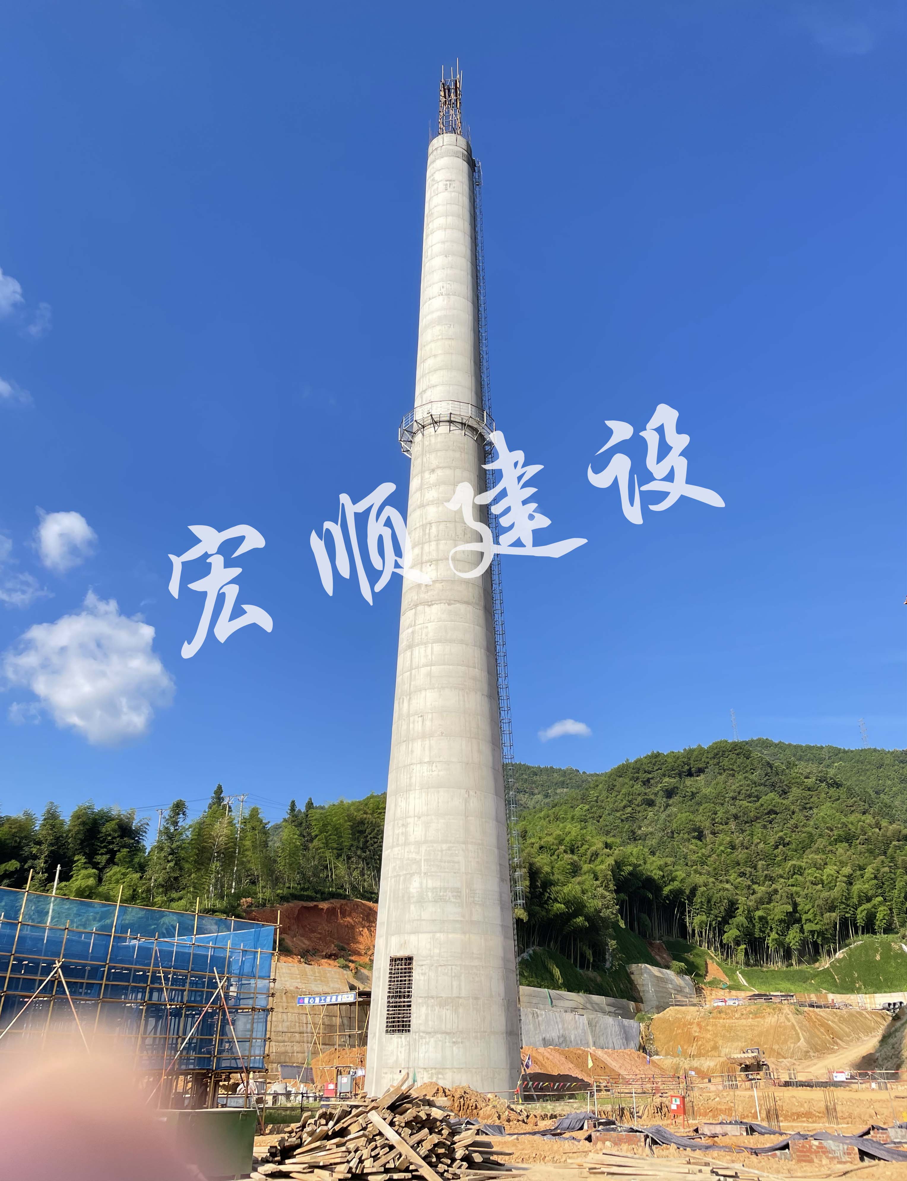 熱烈祝賀福建光澤80米煙囪新建順利封頂大吉