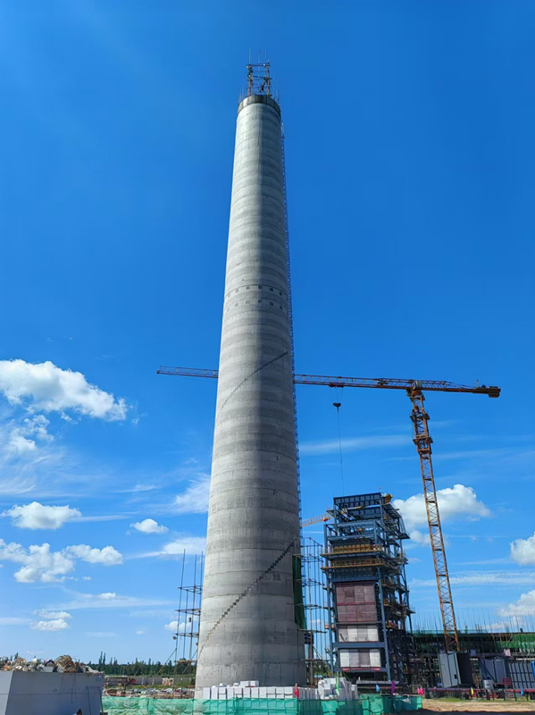 庫(kù)倫鑫城煙囪新建項(xiàng)目今日高度72.77m